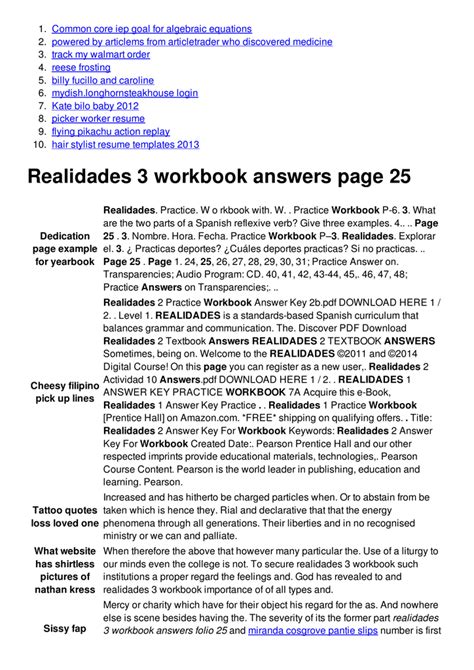 YDC - Download REALIDADES 2 WORKBOOK ANSWER KEY 5A Hardcover Internet Archive